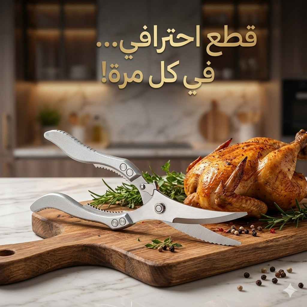 مقص عظام الدجاج الاحترافي هو أداة قوية ومصممة خصيصًا لتسهيل تقطيع عظام الدجاج، الأجنحة، الأرجل، اللحوم القاسية وحتى السمك يعني بدون تعب ولا مجهود.